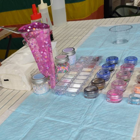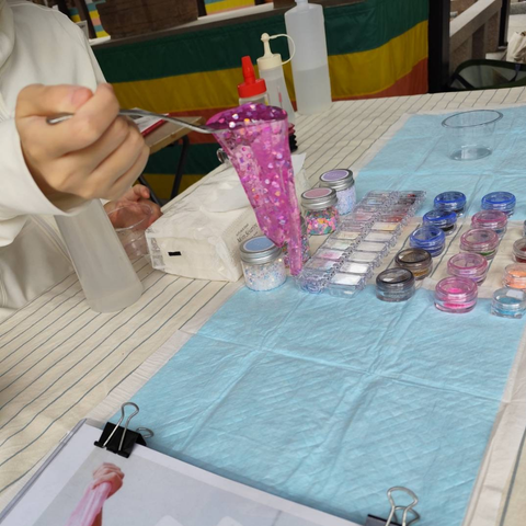 スライムワークショップやレジンアクセサリーとの共同ブースです。